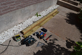 Box of PT deck screws, circular saw, cordless drill & bits.